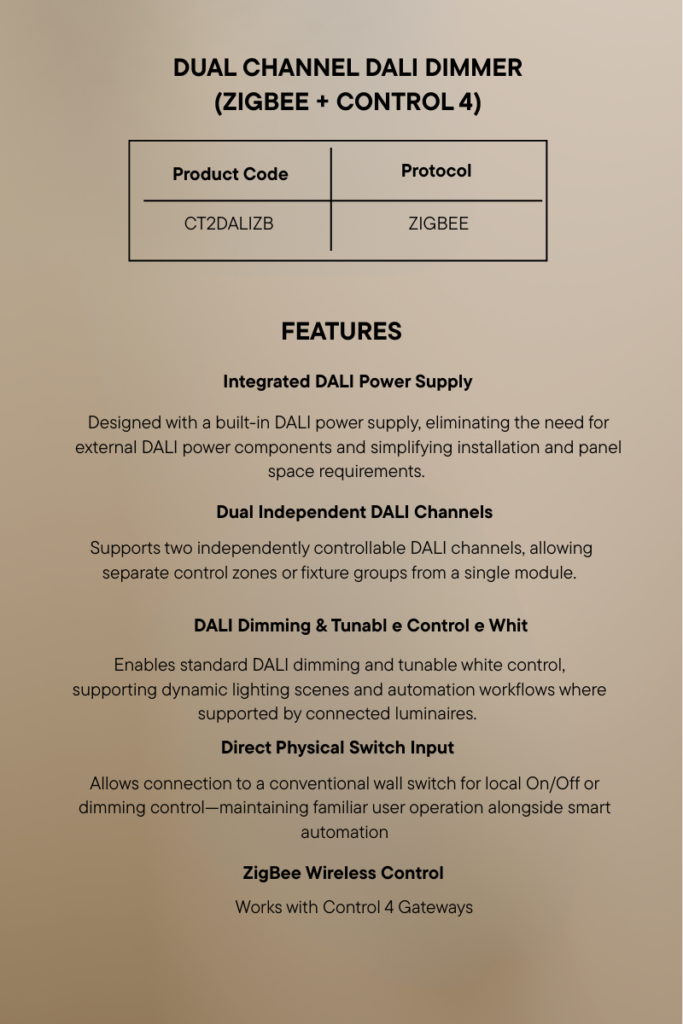 Dual Channel DALI Dimmer (Zigbee + Control4)